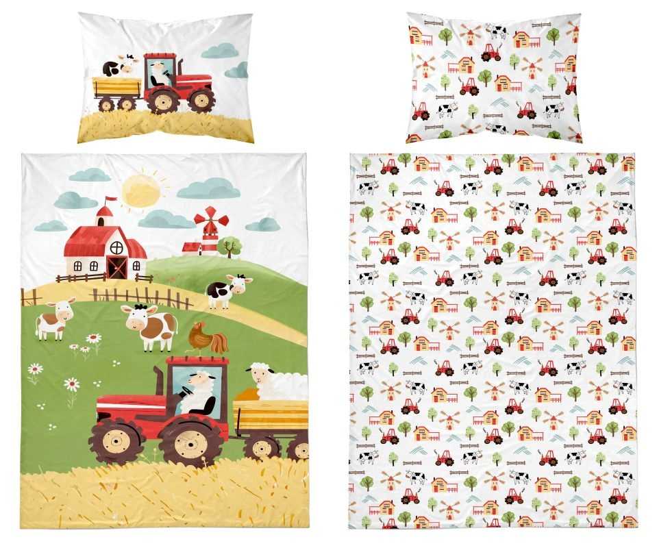Obliečky do postieľky 3D Farma red 100/135, 40/60