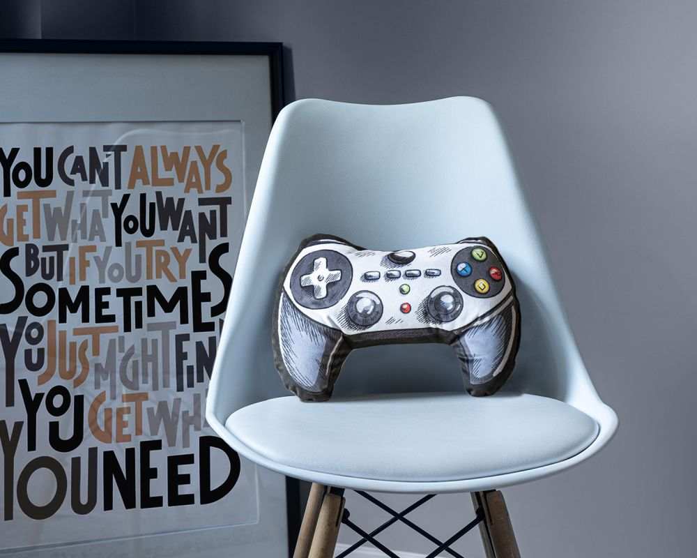 Motív: Dizajn vankúšika v tvare herného ovládača – ideálny doplnok pre hráčov alebo milovníkov hier
