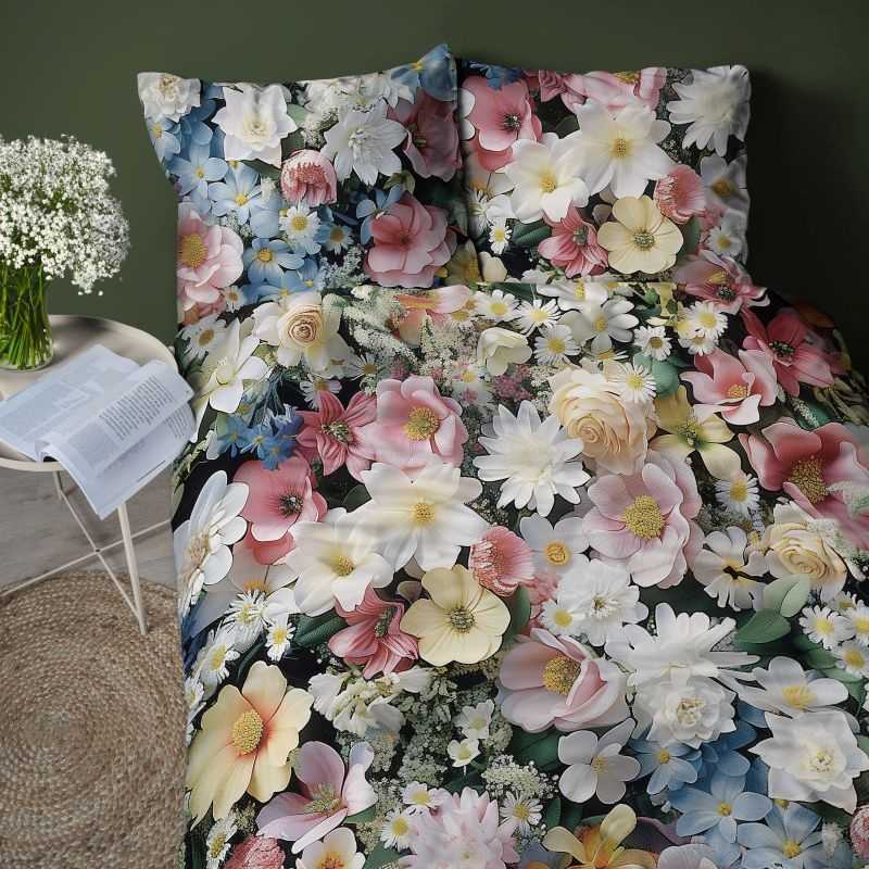 Francúzske obliečky 3D Kvety na čiernom micro 220/200, 2x70/80