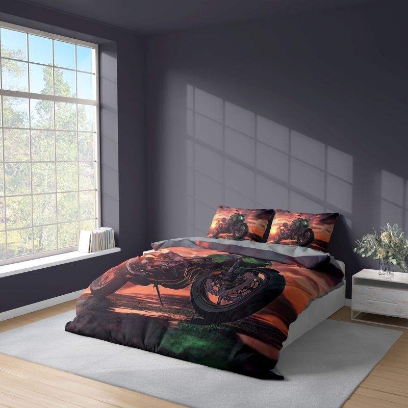 Obliečky 3D na dvojlôžko z mikrovlákna Motorka, vo francúzskom rozmere 220x200 cm + 2x oblička na vankůš 70x80