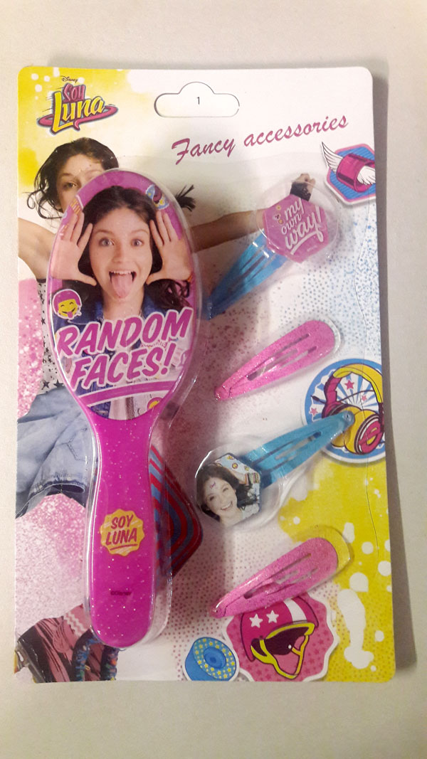 • Súčasťou balenia sú 4 roztomilé sponky s motívom Soy Luna — praktické doplnky pre jemné úpravy účesu.