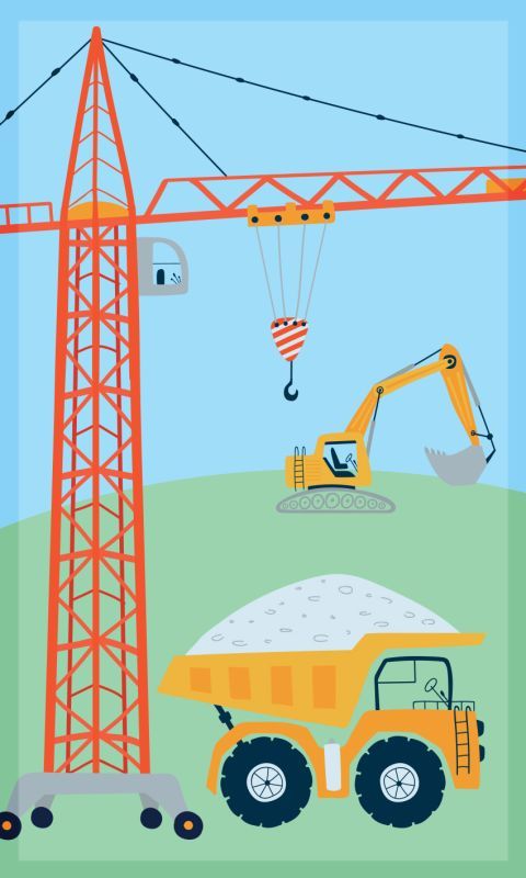 • Motív: stavba – pracovné stroje, žeriav, buldozér