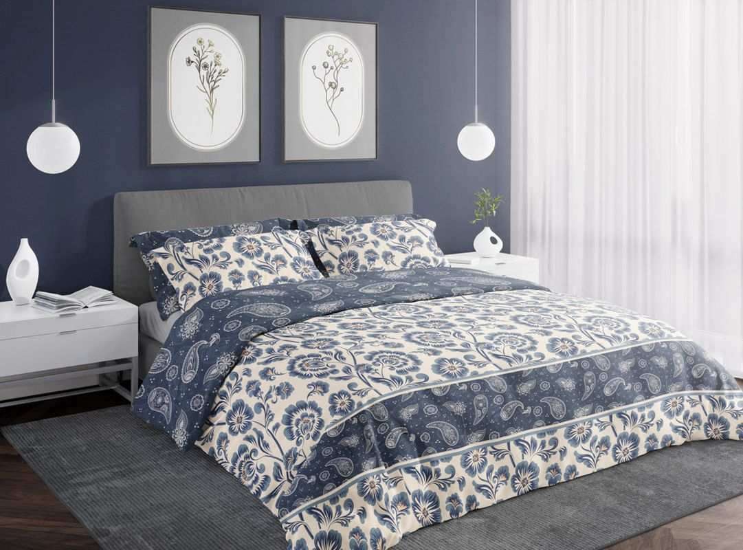 Francúzske obliečky Modré kvety od výrobcu FARO sú elegantnou voľbou pre dvojlôžko. Vyrobené z kvalitného bavlneného saténu, ktorý je príjemný na dotyk a poskytuje vysoký komfort počas spánku. Tieto obliečky s kvetinovým motívom v odtieňoch modrej a béžovej farby dodajú vašej spálni svieži a romantický vzhľad.