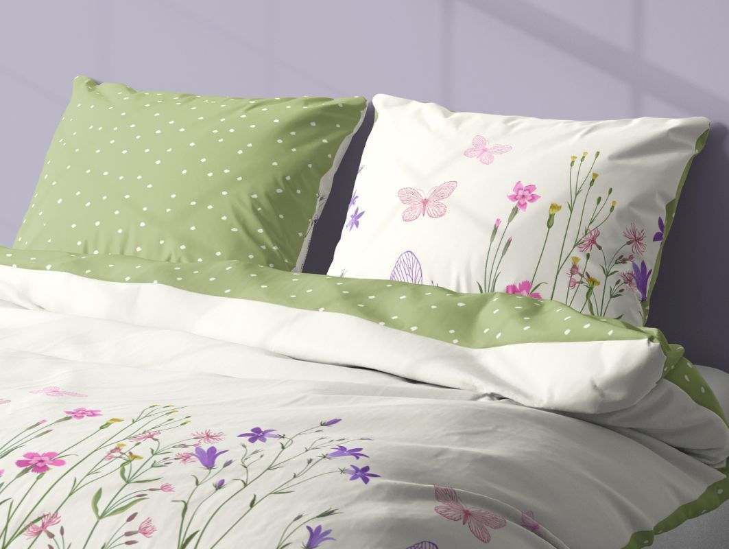 Obliečky bavlnený satén Milagro Verde 03 Jemné Kvety 140/200, 70/90