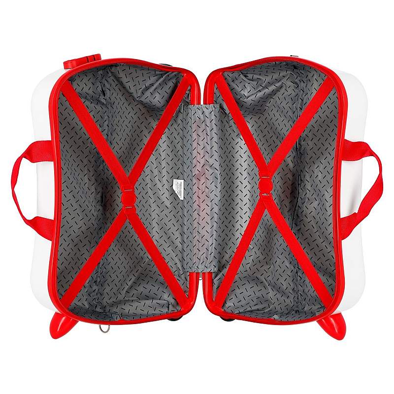 Dětský kufřík na kolečkách pro kluky i holky, velmi kvalitní skořepinový obal, odolný proti nárazům a poškození vnitřního obsahu kufru. Na tomto kufříku mohou děti jak sedět, tak i popojíždět jako na odrážedle. Přední otočná kolečka pro lepší manipulaci. Rozměr umožňuje použití též jako kabinové zavazadlo vhodné i pro nízkonákladové lety.