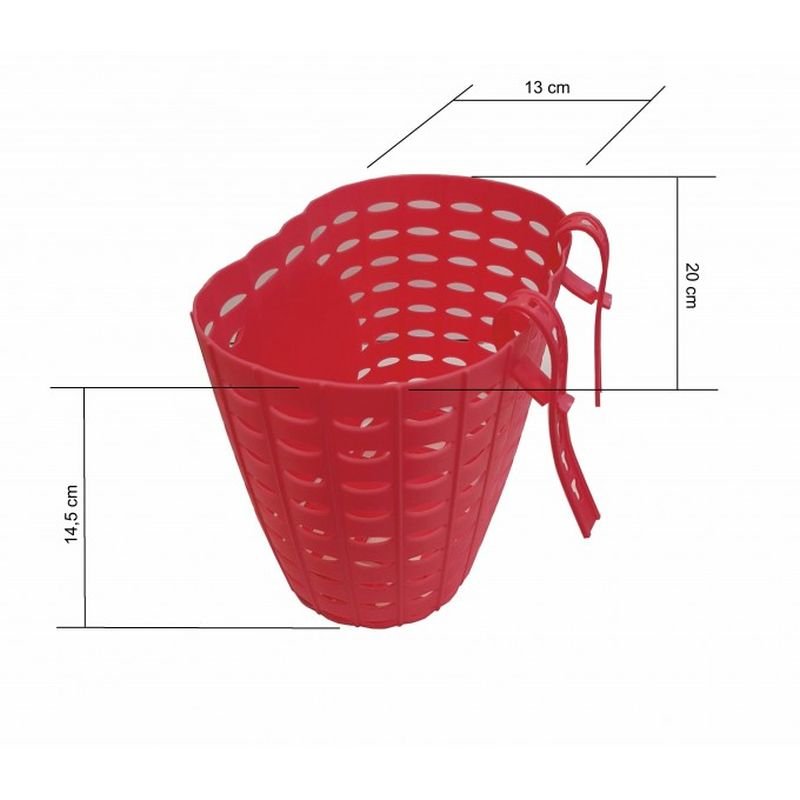 Plastový košík na řidítka na důležité drobnosti malých cyklistů a cyklistek. Košíček lze umístit na řídítka jakéhokoliv kola a nebo odrážedla. Košíček se připevňuje pomocí plastových úchytek, které lze délkově nastavit a uzpůsobit. Lze omývat vodou. Rozměry 20 x 14,5 x 13 cm.